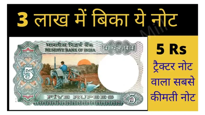 Old 5 rupee tractor note will make you rich, it is being sold here for 3 lakh rupees, know the details, friends, if you also have an old 5 rupee tractor note, then you can become a millionaire in 2023, because many people are fond of old notes. Lakhs of rupees are being given in exchange of notes. If you are currently short of money, then just this 5 rupee note can solve your shortage.